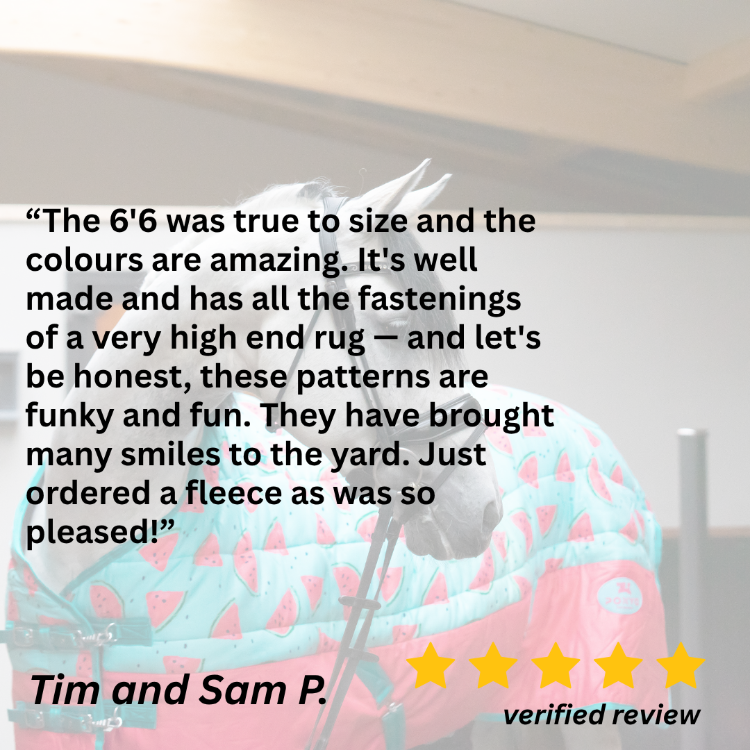 - For horse rugs, please groom your horse thoroughly before trying them on, as rugs with dirt or hair cannot be accepted for refunds.